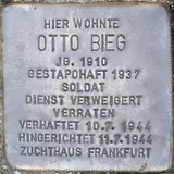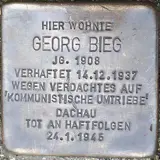 Georg (geb. 1908) und Otto Bieg (geb. 1910) wurden beide am 13. Dezember 1937 wegen „kommunistischer Umtriebe“ verhaftet. Georg wurde denunziert und ins Konzentrationslager Dachau deportiert. Dort wurde er als Sanitäter zwangsverpflichtet. Bei seiner Arbeit rettete er vielen Mitinhaftierten das Leben. Er selbst infizierte sich aber mit Fleckfieber und starb am 24. Januar 1945 an den Folgen der Infektion. Otto Bieg wurde zunächst im Saarbrücker Gefängnis Lerchesflur inhaftiert. Nach seiner Haft wurde er zur Wehrmacht eingezogen. Als er diesen Dienst verweigerte wurde er am 11. Juli 1944 „standesrechtlich“ erschossen.