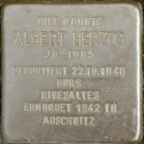 Im Jahr 2007 und 2010 wurden Stolpersteine für Albert Herzog (geb. 1885 in Gemmingen) und seine Ehefrau Rosa Herzog (geborene Gottlieb) in der Judengasse 1 verlegt. Das Ehepaar Herzog wohnte im Gebäude der Illinger Synagoge, wo am 10.11.1938 ein Großteil ihrer Habe verbrannte. Zuletzt lebte die Familie Herzog in Illingen, in der ehemaligen Adolf-Hitler-Straße 14. Albert Herzog war Malermeister, Rosa Herzog Hausfrau. Albert Herzog wurde im Ersten Weltkrieg mit dem Eisernen Kreuz, 1. und 2. Klasse ausgezeichnet. Er wurde nach der Reichspogromnacht ins KZ Dachau verschleppt, kehrte aber nach Illingen zurück. Im Rahmen der Wagner-Bürckel-Aktion wurde das Ehepaar deportiert und über das Internierungslager Gurs, Camp de Rivesaltes und das Sammellager Drancy kamen beide nach Auschwitz, wo sie 1942 ermordet wurden.