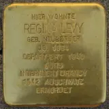 Levy, Regina, geb. Neuberger, wurde am 13.02.1884 Rodalben geboren. Ihre Eltern waren Friedrich Neuberger und Amalie Susmann. Regina Levy war verheiratet mit Elias Emil Levy einem Kaufmann, der am 25.01.1876 in Wawern geboren wurde. Gemeinsam hatten sie drei Kinder: Leo (*22.10.1906), Kurt (*22.09.1908) und Helene (*28.12.1913). Die Familie wohnte in der Judengasse 2 in Illingen. Zuletzt lebte Regina Levy in der ehemaligen Adolf-Hitler-Str. 62. Wie auch die Familie Herzog wurde Regina Levy am 22. Oktober 1940 nach Gurs in Südfrankreich deportiert. Sie kam am 06.08.1942 von Gurs nach Drancy, von dort mit Transport Nr. 17 am 10.08.1942 nach Auschwitz. Was mit den Kindern und dem Ehemann passierte konnten wir leider nicht herausfinden. In der Datenbank „Gurs.Saarland“ findet man den Hinweis, dass sie verwitwet war. Den Kindern ist wohl die Flucht in die USA gelungen, wobei für Helene Levy kein Stolperstein verlegt wurde. Wer Alice und Claudette Levy waren, konnten wir leider nicht herausfinden.