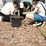 Am 28. Juni 2024 kamen wieder 150 junge Engagierte zusammen, um sich mit der Geschichte des ehemaligen Gestapo-Lagers an der deutsch-französischen Grenze auseinanderzusetzen (bilden) und gemeinsam am Erhalt der Gedenkstätte mitzuarbeiten (buddeln).