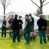 Eindrücke über die Zeit des Lagerbetriebes und Lageralltags der 20.000 zwischen 1943 und 1944 inhaftierten Männer und Frauen wurden den Teilnehmenden von 40 Jugend-Scouts vermittelt, die sich im Rahmen einer mehrtägigen Schulung und bei einem Z(w)eitzeugengespräch mit dem Neue Bremm Experten Horst Bernard intensiv auf den Einsatz beim Workcamp vorbereitet haben. Unterstützung bei den pflegerischen Arbeiten, etwa der Entfernung des Unkrauts auf den ehemaligen Barackenflächen und Wegen, bekamen die jungen Engagierten von den Auszubildenden des Garten- und Landschaftsbaus des Zentrum für Bildung und Beruf (ZBB) Saar, die nicht nur ihr fachliches Wissen einbrachten, sondern auch tatkräftig mit anpackten.