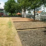 Eindrücke vom Lageralltag der zwischen 1943 und 1944 inhaftierten Männer und Frauen gaben 20 Jugend-Scouts, die sich im Rahmen einer zweitägigen Schulung Ende April auf die Vermittlungstätigkeit für die teils französischsprachigen Teilnehmer*innen vorbereitet haben. „Ich finde es wichtig, an diesem Ort aktiv zu gedenken und diese Geschichte an die nächste Generation weiterzutragen.“, berichtet die Trierer Studentin Alisa Alić, die bereits zum zweiten Mal als Scout beim Workcamp dabei war. Ein Apell den auch der mittlerweile 89-jährige Horst Bernard den Scouts bei einem Zeitzeugengespräch am Freitag Nachmittag mit auf den Weg gab. Hilfestellung bei den praktischen Arbeiten wie der Entfernung des Unkrauts auf den ehemaligen Barackenflächen und Wegen, bekamen die jungen Engagierten von den Auszubildenden des Garten- und Landschaftsbaus des ZBB Saar, die es mit Unterstützung der Stadt Saarbrücken auch ermöglichten eine weitere Fläche an der ehemaligen Kommandanturbaracke freizulegen, mit Schotter zu befüllen und damit sichtbar zu machen.
