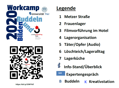 Zur Orientierung stehen kleine Info-Karten (im Visitenkartenformat) zur Verfügung. Auf das Gelände der Gedenkstätte wurde hierbei die rekonstruierte Lagerskizze projiziert. Ferner sind in blau der Infostand, die Scout-Stationen sowie das große Zelt eingezeichnet. Über den QR-Code gelangt man jederzeit (auch nach Ende des Workcamps) zu den im Internet abgelegten Informationen.